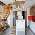 Spanning 65m², this thoughtfully designed apartment comfortably accommodates up to nine guests. The ground floor features a fully equipped kitchen with modern appliances, a cozy living room with a flat-screen TV, and a bedroom with a plush 160cm double bed. Upstairs, you'll find a newly renovated shower room, a second bedroom with two single beds, and a mezzanine area with bunk beds and an additional single bed. An alcove with two single beds provides extra sleeping space, making this home perfect for families or groups of friends. The private balcony offers a stunning panorama of the valley and surrounding peaks, creating the perfect backdrop for your morning coffee or evening relaxation.
