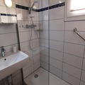 Inside, the 41m² apartment is thoughtfully designed to accommodate up to six guests. The cozy living area features a trundle bed, a single sofa bed, and a dining area with a fold-down bed, providing flexible sleeping arrangements for families or groups of friends. A separate bedroom with two single beds offers additional comfort and privacy. The kitchen is compact yet fully equipped with modern appliances, including an electric stovetop, microwave, dishwasher, washing machine, coffee maker, and toaster, making it easy to prepare meals after a day of adventure. The beautifully renovated shower room and separate toilet add a touch of luxury to your stay, while the provided television ensures cozy evenings indoors.