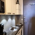 The living room includes a double sofa bed and a flat-screen TV. For your comfort, a sleeping alcove with two bunk beds and a TV is also available. The kitchen, located in the entrance, is equipped with a combi oven, two ceramic hobs, a refrigerator, a dishwasher, and a SENSEO coffee maker.