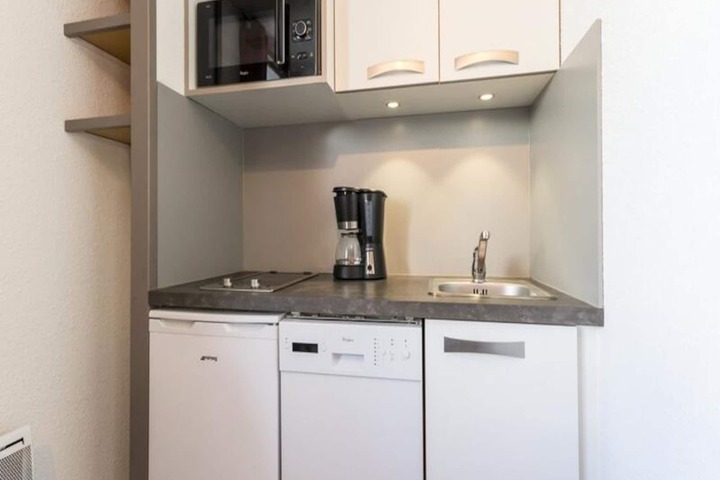 Perched in the vibrant heart of the resort, this charming studio in the 'Les Choucas' residence offers a cozy retreat for couples seeking an alpine getaway. With breathtaking views of the valley and surrounding mountains, this renovated 19m² studio invites you to immerse yourself in the beauty of the French Alps. Whether you’re here for skiing adventures or summer hikes, the convenience of shops and ski lifts just steps away ensures every moment is effortless and enjoyable. The residence also provides free parking, an elevator, and individual ski lockers for added comfort and practicality. \n\nInside, the studio is thoughtfully designed to maximize space and comfort. The kitchenette is equipped with modern amenities including ceramic hobs, a microwave, refrigerator, dishwasher, and toaster—perfect for preparing meals after a day of exploration. The living area features a double trundle bed and a TV, creating a cozy space to unwind. The bathroom includes a shower, sink, and toilet, ensuring all essentials are at hand. Please note that sheets are not provided, and end-of-stay cleaning is available at an additional cost. \n\nBeyond the residence, the resort offers a wealth of activities and attractions. From ski slopes that cater to all levels to scenic trails that reveal the region’s natural splendor, there’s something for everyone. In summer, the valley transforms into a haven for outdoor enthusiasts with opportunities for hiking, cycling, and wildlife spotting. Whether you’re chasing adrenaline or seeking tranquility, this studio serves as the perfect base for your alpine escape.