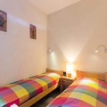Inside, the 29m² apartment is thoughtfully designed to accommodate up to four guests. The fully equipped kitchenette includes modern appliances such as a ceramic hob, dishwasher, microwave, toaster, and coffee maker, making it easy to prepare hearty meals. The bedroom features two comfortable single beds, while the living room offers two single sofa beds, ensuring a restful stay for all. A flat-screen television, a bathroom with a separate toilet, and cozy duvets add to the comfort and convenience of this charming space.