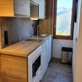 Imagine waking up to the serene beauty of the French Alps, where the crisp mountain air and breathtaking views of the valley set the tone for your day. This charming studio in the heart of Les Coches offers a cozy retreat for up to four guests, blending modern comfort with alpine charm. Recently renovated in fall 2024, the studio boasts a tasteful design and a prime location just 200 meters from the slopes and shops, making it an ideal choice for ski enthusiasts and nature lovers alike. \n\nStep inside this thoughtfully designed 22m² space and discover a well-equipped open kitchen featuring ceramic hobs, an oven, a microwave, a refrigerator, a dishwasher, and all the essentials to prepare hearty meals after a day of adventure. The living area invites relaxation with a comfortable sofa bed and a flat-screen TV, while the entryway provides additional sleeping arrangements with a set of bunk beds. The modern shower room with an Italian shower and separate toilet ensures convenience for all guests. Outside, a small terrace offers a stunning panorama of the valley and surrounding mountains, perfect for unwinding with a warm drink. \n\nThe residence is equipped with ski lockers for easy storage and free public parking, ensuring a hassle-free stay. Its proximity to the ski lift ticket office and resort center means you’re always close to the action, whether you’re hitting the slopes or exploring the vibrant local scene. For larger groups, booking adjacent apartments provides space for up to 10 guests, making it a fantastic option for families or friends traveling together. \n\nWith its unbeatable location, modern amenities, and enchanting views, this studio is your gateway to unforgettable alpine adventures. Whether you’re here for winter sports or summer hikes, Les Coches promises a magical escape in every season.