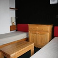 The studio, located on the second floor of the Pentes aux Coches residence, is thoughtfully designed to maximize comfort and functionality. The space features a fully renovated kitchenette equipped with a ceramic hob, oven, microwave, dishwasher, coffee maker, and a compact refrigerator—perfect for preparing hearty meals after a day on the slopes. The living area includes two single sofa beds, while a sliding partition allows you to create a separate sleeping space with two additional single beds. A flat-screen TV, a bathroom with a bathtub, and a separate toilet complete the amenities, ensuring a relaxing stay.