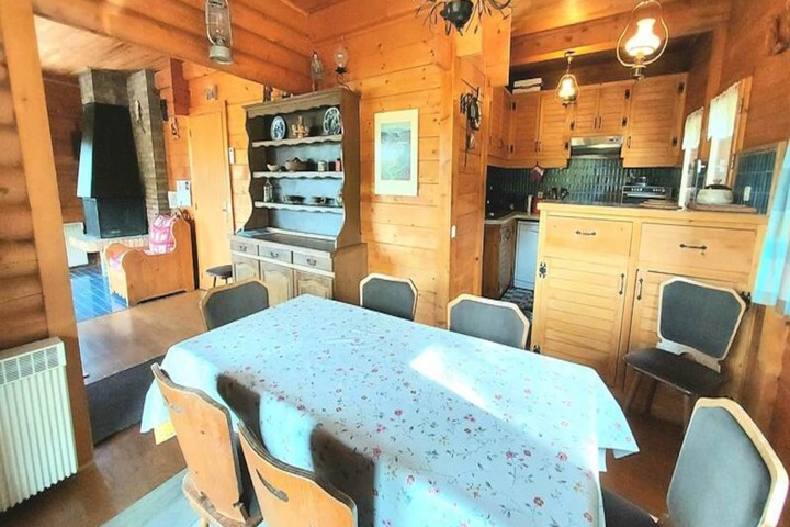 Spanning 105m², the chalet comfortably accommodates up to six guests across three thoughtfully designed bedrooms. The spacious living room, complete with a cozy corner sofa and television, invites you to unwind after a day of exploration. The fully equipped kitchen, featuring modern appliances such as a dishwasher, oven, and two refrigerators, ensures you have everything needed to prepare delicious meals. Two bathrooms, one with a separate toilet, provide convenience and privacy for all guests. Additional amenities include a ski locker and a private garage, adding to the ease of your stay.