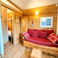 Compact yet thoughtfully designed, the 20m² apartment comfortably accommodates up to four guests. The living room features a TV, a single bed, and a trundle bed, while a separate sleeping area with bunk beds ensures privacy and comfort. The kitchen is equipped with all essentials, including a combi oven, electric hob, and refrigerator, making it easy to prepare meals after a day on the slopes. Additional conveniences like a ski locker and optional services such as bed linen and towel delivery enhance your stay.