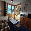The 20m² studio is thoughtfully designed to accommodate up to three guests. The living area features a comfortable sofa bed and a trundle bed, ensuring restful nights after days filled with adventure. The compact yet fully equipped kitchen includes a dishwasher, microwave, mini oven, ceramic hob, and refrigerator, making it easy to prepare hearty meals. A modern shower room and toilet complete the space, while the southwest-facing balcony provides the perfect spot to soak in the sun and admire the snowy vistas. Additional conveniences such as a ski locker enhance your stay, ensuring a hassle-free experience.