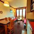 Inside, the 30m² apartment is thoughtfully designed to accommodate up to five guests. The living room features a cozy single bed and a trundle bed, while the separate bedroom boasts a plush 160cm double bed for restful nights. The kitchen is fully equipped with a dishwasher, combi oven, hob, and refrigerator, making it easy to prepare hearty meals after a day on the slopes. A modern bathroom and separate toilet add to the convenience, and a ski locker ensures your gear is always ready for the next adventure. Please note that bed linens and towels can be reserved in advance, and pets are not permitted in this non-smoking apartment.