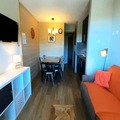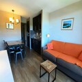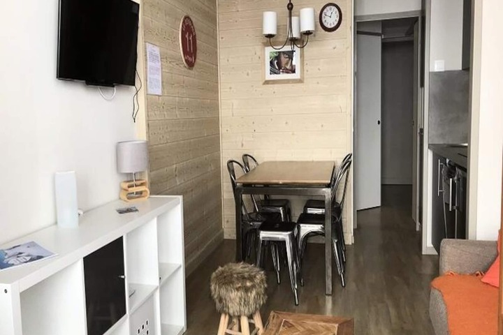 This cozy 23m² apartment, fully renovated in 2018, is located on the 4th floor and features elevator access. The living space is thoughtfully designed, with a comfortable sofa bed (160x190cm) in the main room and a sleeping alcove with two bunk beds (80x190cm), making it ideal for couples or small families. The modern kitchen is equipped with a dishwasher, microwave, oven, and ceramic hob, providing everything you need to prepare hearty meals after a day on the slopes. The bathroom offers a sleek walk-in shower and toilet, while the apartment’s large windows present unobstructed views of the surrounding slopes, filling the space with natural light and alpine serenity.