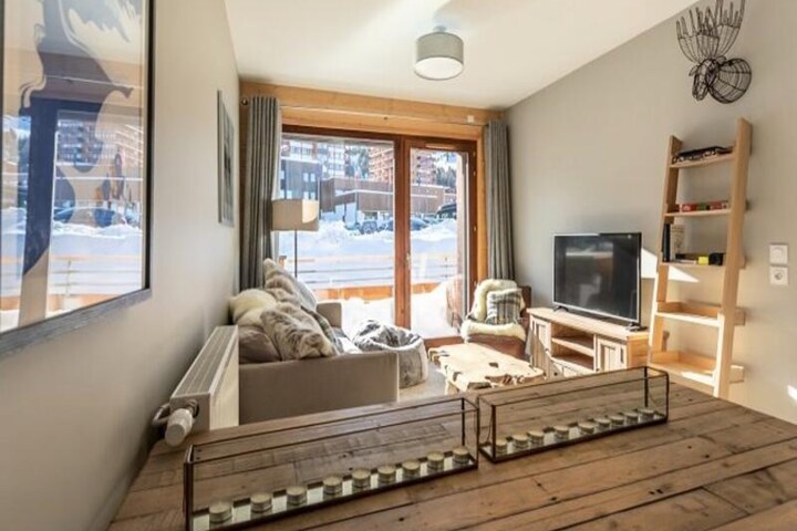 High above the Tarentaise Valley, where the crisp alpine air invigorates the senses, this modern mountain retreat in Plagne Centre offers a perfect blend of comfort and convenience. Located at 1970 meters, the residence places you at the heart of one of the Alps' most dynamic ski areas, with the iconic La Grande Rochette panorama just a short ascent away. Whether you're seeking thrilling winter adventures or serene summer escapes, this property promises unforgettable moments in the French Alps.
