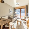 Step inside this 54m² apartment and discover a thoughtfully designed space that caters to your every need. The bright living room, complete with a cozy sofa and television, opens onto a south-facing balcony where you can soak in the mountain views. The open-plan kitchen is fully equipped with modern appliances, including a refrigerator/freezer, dishwasher, washer-dryer, ceramic hob, oven, microwave, and Nespresso coffee maker, making meal preparation a breeze. The master bedroom features a plush double bed and an en-suite shower room, while the second bedroom offers two versatile single beds. With two bathrooms and a separate toilet, the layout ensures privacy and comfort for all guests. Additional amenities include a ski locker and private garage, ensuring a seamless stay.