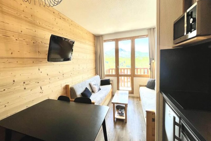 High above the Tarentaise Valley, this charming one-bedroom apartment in the Andromède Residence offers a perfect alpine retreat in Belle Plagne. With its southwest-facing balcony, you can soak in the breathtaking mountain views while basking in the sunshine, creating a serene and picturesque atmosphere for your holiday. Belle Plagne, perched at 2,050 meters, is a pedestrian-friendly resort known for its traditional mountain architecture and direct ski-in, ski-out access to the slopes, making it a haven for winter sports enthusiasts and nature lovers alike.