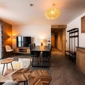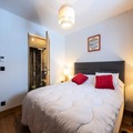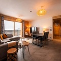 Spanning 88m², this spacious ground-floor apartment is designed to accommodate up to eight guests in absolute comfort. The bright and inviting living room features a plush corner sofa and a large television, creating the perfect space to unwind after a day of adventure. The fully equipped open-plan kitchen, complete with a wine cooler and Nespresso coffee maker, makes dining in a pleasure. The sleeping arrangements include a luxurious master suite with an en-suite shower and queen-size bed, a cozy children's room with bunk beds, and a versatile twin room. Additional amenities such as a washer/dryer, ski locker, and private parking ensure a hassle-free experience.