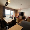 Spanning 84m², the apartment is designed to accommodate up to six guests in style. The spacious living room, featuring two plush sofas and a flat-screen TV, opens onto a balcony that frames the majestic mountain vistas. The open-plan kitchen is fully equipped with modern appliances, including a refrigerator, ceramic hob, microwave, oven, and dishwasher, making it perfect for preparing hearty meals after a day of adventure. The sleeping arrangements include a master suite with a private shower room and toilet, a cozy children’s room with two single beds, and a versatile third bedroom where the twin beds can be combined. Additional conveniences such as a washer/dryer, separate toilet, and Wi-Fi ensure a seamless stay.