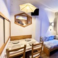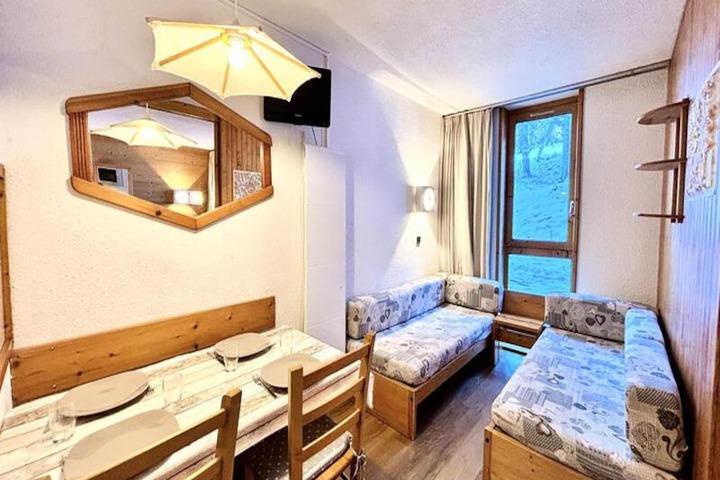 Amidst the serene beauty of Les Coches, this charming 27 m² studio offers a cozy alpine retreat for up to four guests. With its ground-floor location and south-facing terrace overlooking the enchanting fir trees, it’s the perfect spot to unwind after a day of mountain adventures. The studio’s clever design includes a movable partition to create a flexible living space, ensuring both comfort and privacy during your stay. \n\nInside, you’ll find a well-equipped kitchenette featuring a microwave, dishwasher, ceramic hobs, refrigerator, electric coffee maker, toaster, and even a raclette set for a true taste of the Alps. The living area includes four single beds and a TV, while the bathroom and separate toilet add convenience. The apartment is non-smoking, pet-free, and comes with cozy duvets for a restful night’s sleep. A ski locker is provided within the residence for easy access to the slopes.\n\nThe residence itself is a blend of traditional wood and stone architecture, seamlessly connected to nearby buildings for added convenience. Located in the heart of Les Coches, you’ll be steps away from shops, restaurants, and the lively Place du Carreau, where seasonal activities bring the village to life. Families will appreciate the proximity to the daycare and ESF ski school, while underground parking ensures hassle-free arrivals.\n\nWhether you’re here to carve through the Paradiski slopes or explore the summer trails, this studio offers a welcoming base for your alpine escape. Book now and immerse yourself in the charm and adventure of the French Alps.