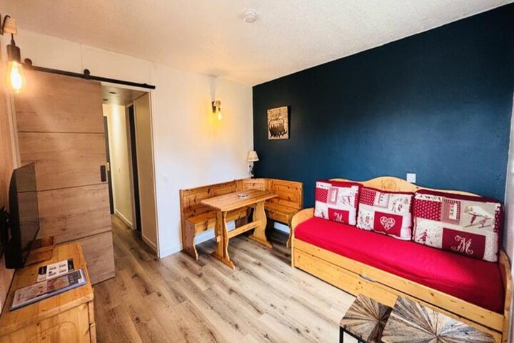 The Observatoire district, known as the quietest area of Les Coches, offers panoramic views of the valley and Mont Blanc. A short pedestrian path connects you to the lively resort center in under five minutes. Whether you’re here to ski, explore the alpine trails, or simply unwind in the serene mountain setting, this studio provides an ideal base for your adventures. With its unbeatable location and charming ambiance, it’s the perfect choice for a memorable alpine getaway.