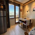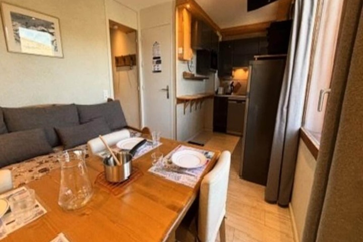 With breathtaking views of Mont Blanc and a prime location in the heart of Les Coches, this charming 22 m² apartment offers an intimate alpine retreat for up to four guests. Situated on the 4th floor of a centrally located residence (accessible via the 1st floor from the secondary entrance), this cozy space is perfect for couples or small families seeking a comfortable and convenient mountain escape. The apartment’s northwest-facing orientation ensures stunning sunsets over the peaks, creating a magical ambiance after a day on the slopes. \n\nInside, the apartment features a thoughtfully designed layout with a bedroom furnished with a double bed, and a living room equipped with a single bed and trundle bed, making it ideal for flexible sleeping arrangements. The kitchenette, integrated into the living area, is fully equipped with modern appliances, including an oven, dishwasher, microwave, induction hobs, and even a raclette and fondue set for a true taste of the Alps. A television and cozy furnishings complete the inviting atmosphere, while the shower room with a toilet ensures all essentials are met. \n\nThe residence itself is perfectly positioned at the foot of the slopes, with direct access to the vibrant Place des Commerces. Here, you’ll find a variety of shops, restaurants, and amenities, as well as the ESF ski school and daycare, making it an excellent choice for families. The Carreau neighborhood is known for its lively atmosphere, hosting numerous activities and events throughout the season. For added convenience, a ski locker is available, and underground parking can be reserved in advance. \n\nWhether you’re here to carve through the Paradiski slopes, explore the charming village, or simply relax and soak in the alpine beauty, this apartment offers the perfect base for an unforgettable mountain getaway. Non-smoking and pet-free, it ensures a clean and tranquil environment for all guests.