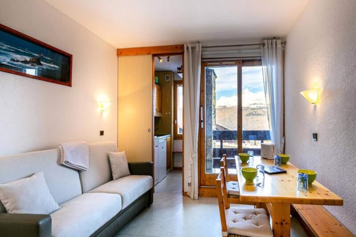 Imagine waking up to the breathtaking sight of Mont Blanc from your private balcony, where the crisp alpine air sets the tone for a day of adventure. This charming 26 m² apartment, nestled in the serene Observatoire district of Les Coches, offers an inviting retreat for up to four guests. With its cozy ambiance and thoughtful amenities, it’s the perfect base for exploring the beauty of the French Alps.