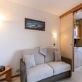 The apartment features a comfortable bedroom with bunk beds and a living room equipped with a sofa bed, TV, and radio. The separate kitchenette is fully equipped with a microwave, dishwasher, electric hotplates, and even a raclette set for a true alpine dining experience. A modern shower and separate toilet add to the convenience, while the north-facing balcony provides stunning views of the valley and Mont Blanc. Ski enthusiasts will appreciate the ski locker in the building and the proximity to the slopes, just 100 meters away.