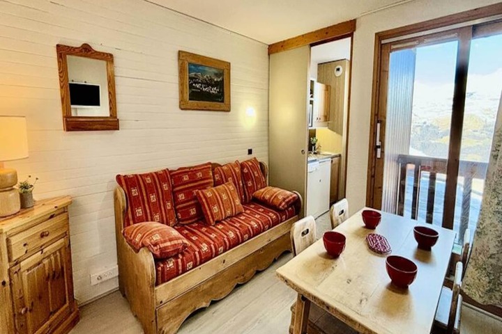 In the serene Observatoire district of Les Coches, this charming 26 m² apartment offers a cozy alpine retreat with breathtaking views of Mont Blanc and the valley. Perfect for couples or small families, this first-floor accommodation invites you to experience the magic of the French Alps, just steps away from the slopes and a short stroll to the resort center. Imagine sipping your morning coffee on the northwest-facing balcony, soaking in the crisp mountain air and stunning panoramas.