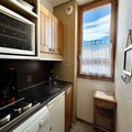 The apartment is thoughtfully designed to maximize comfort and functionality. It features a bedroom with a double bed, a living room with a single bed and a trundle bed, and a separate kitchenette equipped with modern appliances, including an oven, dishwasher, and coffee makers. The bathroom and separate toilet ensure convenience, while the ski locker in the residence adds to the ease of your stay. Please note that this is a non-smoking, pet-free apartment, and Wi-Fi is not available, allowing you to fully disconnect and immerse yourself in the alpine ambiance.