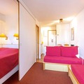 Inside, the apartment is thoughtfully designed to maximize space and comfort. The living room features two single beds and a television, while the separate bedroom with a movable partition offers a double bed for restful nights. The kitchenette is fully equipped with modern appliances, including a microwave/grill, dishwasher, induction hobs, refrigerator, kettle, coffee maker, and a Nespresso machine, ensuring you have everything needed to prepare delicious meals after a day of adventure. The bathroom includes a toilet, and the apartment is equipped with cozy duvets for added warmth. Please note that this is a non-smoking property, and pets are not allowed.