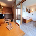 The 28 m² studio is thoughtfully designed to accommodate up to four guests. A movable partition allows for flexible living arrangements, with a sleeping area featuring a single sofa bed and pull-out bed, as well as a dining area with bunk beds. The kitchen is fully equipped with modern appliances, including a dishwasher, microwave, and fondue set, ensuring you have everything needed for cozy evenings in. A private north-facing balcony provides stunning vistas of Mont Blanc, while the ski locker in the residence adds convenience for winter sports enthusiasts. Please note that the apartment is non-smoking, and pets are welcome for a small fee.
