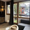 The apartment has been thoughtfully renovated, blending contemporary design with cozy alpine charm. It comfortably accommodates up to six guests, featuring a living room with a sofa bed and a television, as well as a bedroom with double bunk beds that provide a snug retreat. The open kitchen is fully equipped with modern appliances, including a refrigerator, ceramic hob, microwave, and even a raclette grill for a true taste of the Alps. Additional amenities such as a ski locker and covered parking ensure a hassle-free stay.