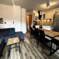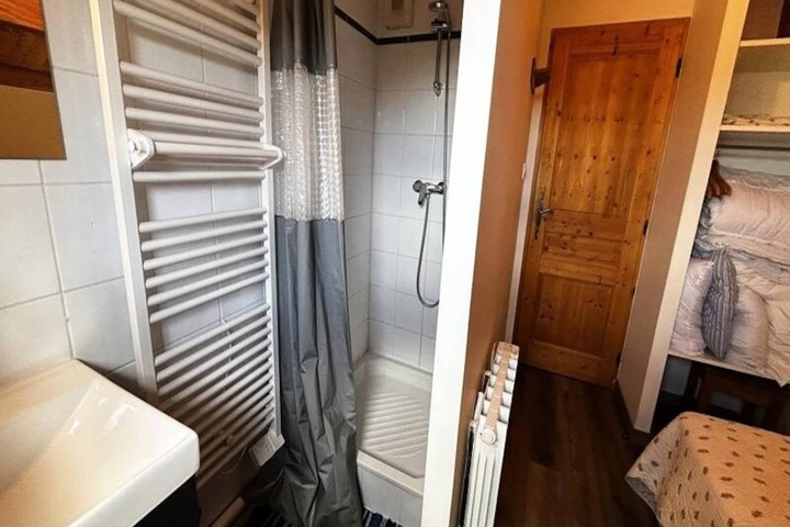 Spanning 80m² over two levels, the chalet comfortably accommodates up to eight guests. The thoughtfully designed layout includes three cozy bedrooms: two with double beds, one featuring an en-suite shower, and another with a private sink. The third bedroom offers two single beds and two trundle beds, making it ideal for families or groups. The open-plan living area invites relaxation with a plush sofa and TV, while the fully equipped kitchen boasts modern appliances like a ceramic hob, dishwasher, and Senseo coffee maker. Additional conveniences include Wi-Fi, a ski room with a boot dryer, and a washing machine for extended stays.