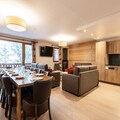 The apartments, accommodating between 2 and 15 guests, are thoughtfully designed with comfort and elegance in mind. Each unit features a fully equipped kitchen, cozy living spaces, and luxurious whirlpool baths, creating a home-away-from-home atmosphere. Whether you’re unwinding by the fire after a day on the slopes or enjoying a meal with loved ones, the warm interiors ensure a memorable stay. For added indulgence, the on-site wellness center boasts a swimming pool, spa, sauna, and fitness room, perfect for rejuvenating after an active day.