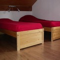 Designed to accommodate up to 7 guests, the apartment features a welcoming living room with a sofa bed, an open-plan kitchen, and a dining area with seating for seven. The two bedrooms provide flexible sleeping arrangements, including one with three single beds and another with a double bed. A bathroom with a bathtub and a separate WC ensure convenience for families or groups. Modern amenities like a TV and private parking add to the comfort, while pets are welcome for an additional fee, making it a perfect choice for animal lovers.