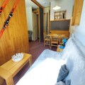 The apartment boasts a fully-equipped, independent kitchen with a dishwasher, oven, and electric hob, ideal for preparing meals at home. The independent bathroom and toilet provide added privacy. The west-facing terrace offers a pleasant view of the slopes, providing a perfect spot to unwind after a day on the mountain.