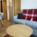 This cozy 36 m² apartment accommodates up to 4 guests with 1 bedroom featuring a double bed (160 x 200 cm) and a comfortable sofa bed in the living room. The apartment is non-smoking and pet-free, with Wi-Fi and underfloor heating. It includes essential services like bed linen, bathroom linen, and end-of-stay cleaning (excluding the kitchen area). One covered underground parking space is included, and the residence offers easy access to the slopes just 50 meters away.