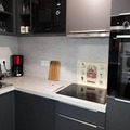The apartment features a fully equipped kitchen with a dishwasher, ceramic hob, oven, microwave, and coffee maker. It includes a dining area, a spacious living room with a TV, and an east-facing balcony with mountain views. The bathroom includes a shower, and the apartment is equipped with a washing machine for convenience. A ski locker and an underground parking space are available.
