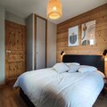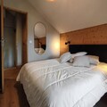 This 76 m² duplex chalet accommodates 6 people with three bedrooms. The first level has a double bedroom, a spacious living area with a sofa, TV, and a dining table for six. Upstairs, there is a second double bedroom and a room with two single beds. The chalet includes two parking spaces (covered and outdoor), bed and bathroom linens, and end-of-stay cleaning (excluding kitchen and dishes). It is non-smoking and pets are not allowed, providing a clean and comfortable stay.