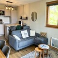 This 76 m² duplex chalet comfortably accommodates up to 8 people with three bedrooms. It features a double bedroom with a TV, a second double bedroom, and a room with two single beds. A sofa bed in the living area offers additional sleeping space. The chalet includes two parking spaces (one covered), bed and bathroom linens, and end-of-stay cleaning (excluding kitchen and dishes). Non-smoking and pet-free, it provides a clean and cozy environment for your stay.