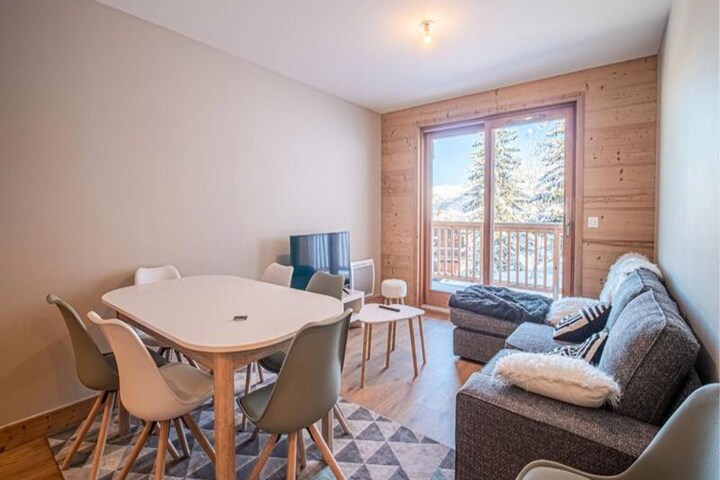 Located in the heart of the picturesque La Charmette hamlet, the apartment offers ski-in/ski-out access, just 50 meters from the slopes. The resort center is easily reachable by the free public shuttle, providing access to shops, cafes, and restaurants. Whether in winter for skiing or snowshoeing or in summer for hiking, this charming location offers year-round outdoor activities. The nearby Grand Domaine ski area features 165 km of slopes, ideal for all levels of skiers.