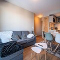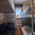This cozy 2-bedroom apartment comfortably accommodates up to 6 guests. The first bedroom features a double bed, while the second is furnished with both bunk beds and a mezzanine bed, making it ideal for families. The apartment is non-smoking, and pets are not allowed. A parking space is included for convenience, along with essential services such as bed linen, bathroom linens, and end-of-stay cleaning (except for the kitchen and dishes). For an additional fee, baby equipment like a travel cot and high chair can be rented.