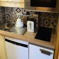 The apartment boasts a fully-equipped kitchenette with modern appliances, including a fridge, microwave oven, and dishwasher. It also features ceramic hobs, a Nespresso coffee maker, and a toaster. For entertainment, guests can enjoy a Philips flat-screen TV, a BOSE sound bar, and a Sony Blu-ray DVD player. The bathroom is complete with a shower and toilet, and the apartment is equipped with a Dyson vacuum cleaner for added convenience.