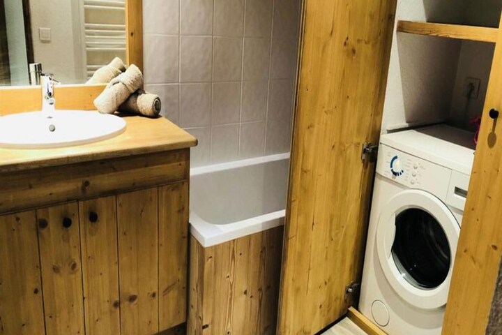 The apartment is well-equipped with a kitchen featuring a fridge, dishwasher, washing machine, and oven, as well as a coffee machine, kettle, and toaster for your convenience. The bathroom has a washing machine, and there are separate toilets for extra comfort. A baby bed, board games, and raclette machine are also provided, ensuring both adults and children are well-catered for.