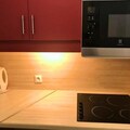 The apartment features a well-equipped kitchenette, complete with a Philips 660 dishwasher, Scholtès fridge, oven, and 4 electric hotplates for cooking meals. Additional appliances include a coffee maker, kettle, toaster, and everything you need for a comfortable stay. A separate bathroom and toilet offer privacy and convenience, while the balcony provides a relaxing space to enjoy the surrounding mountain views.