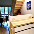 The apartment is well-equipped with a kitchen open to the living room, featuring a pellet stove (pellets not provided) for warmth and comfort. It includes a dishwasher, oven, 4-burner ceramic hob, microwave, and a fridge/freezer. For convenience, there is an electric coffee maker, pod coffee maker, toaster, kettle, and vacuum cleaner. The bathroom is functional, and a separate toilet adds extra privacy. The balcony offers a pleasant space to relax and enjoy the surroundings. Heating ensures a warm and inviting atmosphere throughout the apartment.