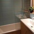 The apartment features an open-plan kitchen with modern appliances including induction hobs, a Siemens dishwasher, an LG microwave, and a traditional oven. A fridge-freezer combination, toaster, kettle, and coffee maker (both filter and capsule options) are also provided for your convenience. The apartment includes a combined washing machine and dryer, and the bathroom and separate toilet facilities ensure a comfortable stay. A balcony is available to enjoy the mountain views.