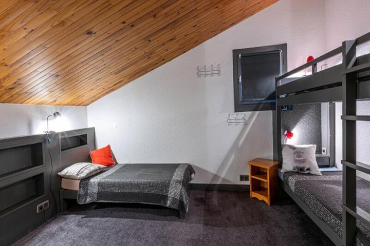 Perched in the picturesque Crève Coeur hamlet of Valmorel, this charming 4-room apartment offers an unbeatable location for ski enthusiasts and nature lovers alike. With the slopes just outside your door and the Télèbourg ski lift a mere 80 meters away, your alpine adventures begin the moment you step outside. Imagine sipping your morning coffee on the southeast-facing balcony, soaking in the breathtaking views of the snowy pistes and surrounding mountain peaks. This cozy retreat is perfect for families or groups seeking a comfortable and convenient base in the heart of the French Alps. \n\nInside, the apartment is thoughtfully designed to accommodate up to eight guests. The open-plan kitchen is fully equipped with a dishwasher, electric hob, microwave, oven, and refrigerator, making it easy to prepare hearty meals after a day on the slopes. The living room, complete with a dining area and television, provides a welcoming space to unwind. Upstairs, you'll find a bunk bed and two single beds in one room, a double bed in the attic bedroom, and a single bed with a trundle in another. The apartment also features a bathroom, a separate toilet, and a shower room with an additional toilet, ensuring ample facilities for all guests. \n\nThe Crève Coeur hamlet is ideally situated, offering easy access to essential shops such as a bakery, sports store, and convenience store. The ESF ski school is just 350 meters away, accessible via the Télèbourg ski lift, making it a great choice for families with children or beginners looking to refine their skills. In addition, paid parking is conveniently located in front of the residence, and the nearby La Lauzière Dessous residence provides ski lockers for added convenience. \n\nWhether you’re here for the thrill of skiing, the charm of Valmorel’s alpine village, or simply to relax and take in the stunning scenery, this apartment is your gateway to unforgettable memories in the French Alps. Book your stay and experience the magic of Crève Coeur for yourself.