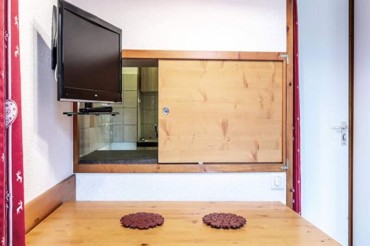 Inside, the apartment is thoughtfully designed with a separate kitchen and living area equipped with modern amenities including an electric hob, dishwasher, and microwave. The living room features three single beds and a trundle bed, providing flexible sleeping arrangements for your group. A tiled bathroom and separate toilet add to the comfort, while the ski locker ensures your gear is safely stored after a day of adventure. Please note that Wi-Fi is not included, and the apartment is non-smoking and pet-free, ensuring a clean and tranquil environment for all guests.