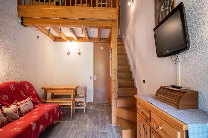 High above the picturesque slopes of Valmorel, this charming 44m² apartment on the top floor of the 'Le Pierrafort' residence offers a serene alpine retreat with breathtaking views of the surrounding mountains. The south-facing balcony invites you to soak in the beauty of the slopes while enjoying the crisp mountain air. Perfectly situated for ski enthusiasts, the residence provides direct access to the Pierrafort cable car and is less than 100 meters from the Télèbourg ski lift, ensuring seamless access to the snowy adventures of the French Alps. \n\nInside, the apartment is thoughtfully designed to combine comfort and functionality. The spacious living room features a cozy double sofa bed, while the bedroom and mezzanine offer flexible sleeping arrangements with two single beds each, making it ideal for families or groups of up to six. A modern open-plan kitchen, equipped with a ceramic hob, dishwasher, oven, microwave, and a large refrigerator, allows you to prepare hearty meals after a day on the slopes. The mezzanine also includes a lounge area, perfect for unwinding. The apartment boasts new bedding for added comfort, a separate bathroom, and a toilet. Please note that Wi-Fi is not included, and the apartment is non-smoking. Pets are welcome for an additional fee.\n\nThe Crève Coeur hamlet, where the residence is located, offers a quiet and convenient base. Basic shops such as a bakery, mini-market, and sports store are within walking distance, and the Télèbourg cable car connects you to the resort center and the Mottet hamlet. In summer, the area transforms into a haven for outdoor enthusiasts, with free parking nearby and easy access to hiking trails and playgrounds for children. \n\nWhether you're seeking thrilling ski adventures in winter or tranquil mountain escapes in summer, this apartment promises a memorable stay in the heart of Valmorel's alpine charm.