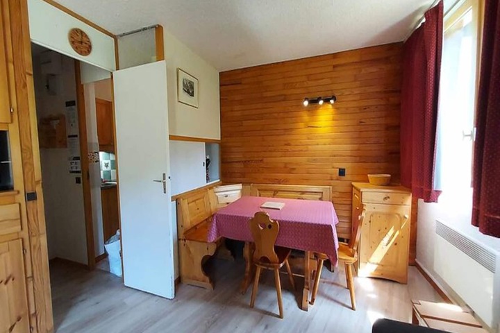 Perched in the charming hamlet of Crève Coeur in Valmorel, this cozy studio apartment offers an idyllic alpine escape just steps from the ski slopes. With the nearest ski lift only 80 meters away and shops a mere 100 meters from your door, this property is perfectly situated for a seamless mountain getaway. Imagine waking up to the crisp mountain air and stepping out onto your south-facing balcony, where unobstructed views of the surrounding peaks set the tone for a day of adventure or relaxation. \n\nInside, the studio is thoughtfully designed to maximize comfort and functionality. The divisible living room features a single bed, a trundle bed, and a sofa bed, providing flexible sleeping arrangements for up to four guests. The separate kitchen is fully equipped with modern amenities, including ceramic hobs, a dishwasher, an oven, and a refrigerator, making it easy to prepare hearty meals after a day on the slopes. A separate bathroom and toilet add convenience, while the Savoyard-style furnishings create a warm and inviting atmosphere. Please note that Wi-Fi is not included, and the apartment is non-smoking. Ski lockers are available in the residence, and pets are welcome for a small additional fee.\n\nThe residence, \