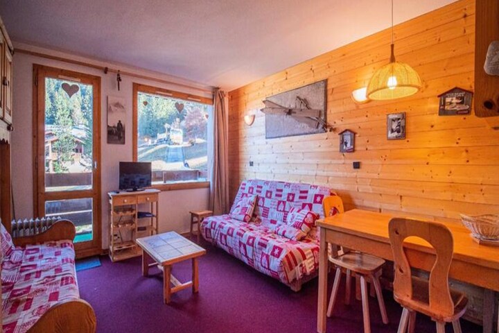 At the edge of the picturesque Crève Coeur area in Valmorel, this charming studio apartment offers a delightful alpine getaway just steps from the slopes. Imagine waking up to the crisp mountain air and stunning views from your east-facing balcony, ready to embark on a day of adventure with ski lifts only 200 meters away and essential shops within a short stroll. Whether you're here to carve through powdery pistes or explore the serene trails in summer, this residence is perfectly situated for year-round enjoyment. \n\nInside, the apartment is thoughtfully designed to accommodate up to four guests. The living room features a double sofa bed, a single bed, and a trundle bed, ensuring comfort and flexibility for families or small groups. The well-equipped kitchen includes a ceramic hob, dishwasher, oven, microwave, and refrigerator, making it easy to prepare hearty meals after a day outdoors. A separate shower room and toilet add convenience, while the ski locker ensures your gear is always ready for the next adventure. Please note that Wi-Fi is not included, and the apartment is non-smoking and pet-free.\n\nThe Crève Coeur area is a tranquil yet connected sector of Valmorel, linked to the resort center and the charming hamlet of Mottet via cable car. Nearby, you'll find a bakery, mini-market, and sports store for all your needs. For advanced skiers, the Côte Soleil ski lift provides direct access to the slopes, while beginners and children can enjoy the Pierrafort gondola. Paid underground parking is available for added convenience.\n\nWhether you're seeking thrilling ski days or peaceful mountain escapes, this cozy studio is your gateway to the enchanting landscapes of Valmorel. With its prime location and welcoming ambiance, it promises an unforgettable alpine experience.