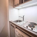 Inside, the 27m² studio is thoughtfully designed to accommodate up to four guests. The living area features four single sofa beds, providing flexible sleeping arrangements for families or friends. A separate kitchen equipped with a dishwasher and electric hob makes meal preparation a breeze, while the bathroom and toilet offer privacy and practicality. Although Wi-Fi is not included, the apartment’s welcoming ambiance and proximity to the slopes more than make up for it. Additional amenities include a ski locker for your gear and the option to bring pets along for a small fee.