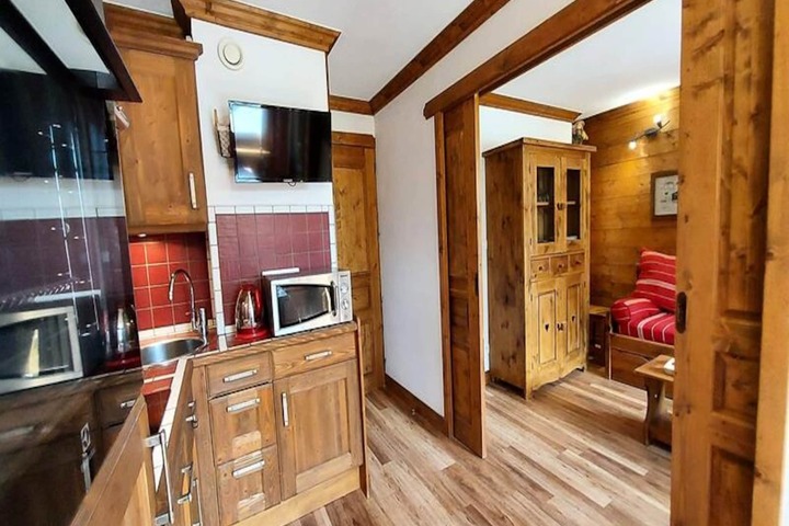 In the picturesque hamlet of Planchamp, where the charm of Savoyard traditions meets the thrill of alpine adventures, this renovated divisible studio apartment offers a delightful retreat for your mountain getaway. Imagine waking up to the crisp mountain air, stepping out onto your private east-facing balcony to enjoy a sunny breakfast, and being just 50 meters from the slopes for a day of skiing or snowboarding. Whether you’re seeking tranquility or excitement, this location offers the perfect balance. \n\nThe 34m² studio is thoughtfully designed to accommodate up to four guests. The living area features a comfortable single sofa bed with a pull-out bed, a cozy dining space with seating for four, and a fully equipped kitchen complete with a dishwasher, ceramic hob, oven, microwave, and even raclette and fondue sets for a true alpine culinary experience. The sleeping alcove with bunk beds provides a snug and private space, while the modern shower room and separate WC ensure convenience. A ski locker is also available for your gear, making your stay even more hassle-free.\n\nPlanchamp’s location is ideal for those who want to immerse themselves in the Savoyard atmosphere while enjoying easy access to amenities. The slopes and ski lifts are just 50 meters away, and the resort center with shops and restaurants is only 200 meters from your doorstep. Whether you’re exploring the snowy trails in winter or the lush alpine landscapes in summer, this hamlet offers a serene yet accessible base for your adventures.\n\nChoose this cozy studio for a holiday that combines comfort, authenticity, and the joy of the mountains. With its prime location and thoughtful amenities, it’s the perfect setting for creating unforgettable memories in the heart of the French Alps.