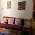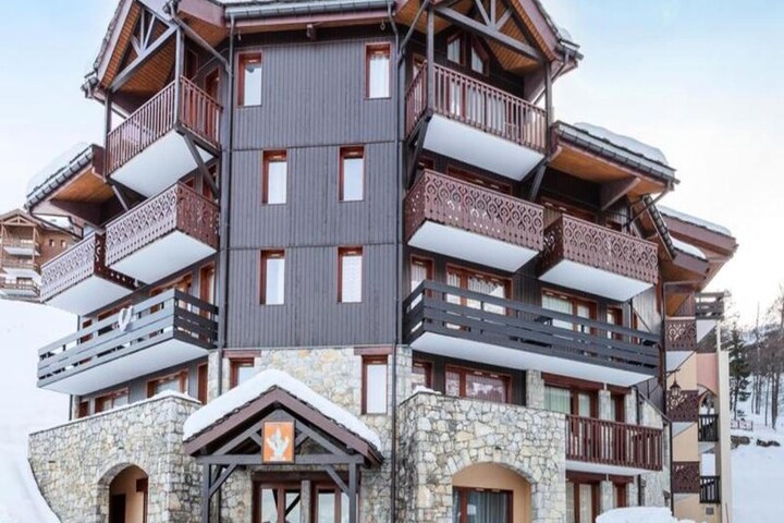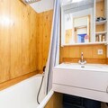 The apartment features a living area with a convertible sofa bed, two single beds, a well-equipped kitchen, a bathroom with a bathtub, and a separate WC. Guests can enjoy a private balcony with mountain views, perfect for unwinding after a day of activities. Ski-in, ski-out access via the Lanchettes chairlift allows for easy access to the slopes, making it a fantastic choice for winter sports enthusiasts. In addition, the residence offers amenities such as a ski locker, raclette machine, and flat-screen TV.